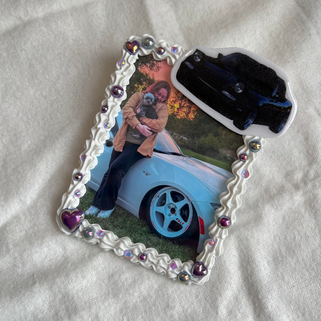 This product is designed for everyone! I made one for myself and my boyfriend so we could safely display photos in our cars. Our cars have no spot to display a photo in the dashboard like some older cars might, so I came up with this idea. Please know it is unsafe to cover anything on the dashboard of your vehicle, this product can help you safely display photos in an even cuter way!