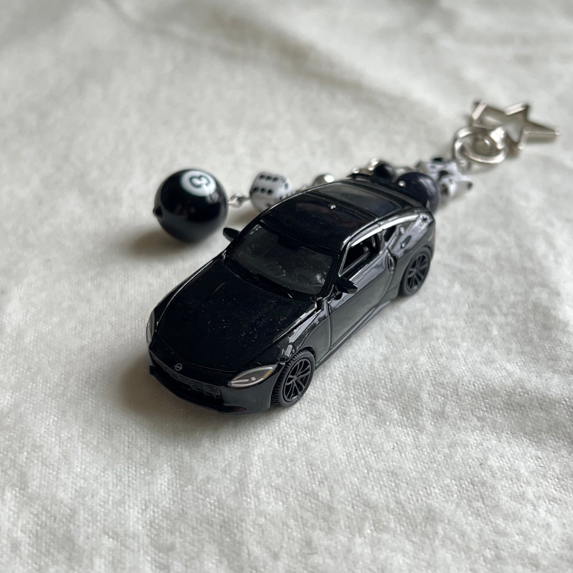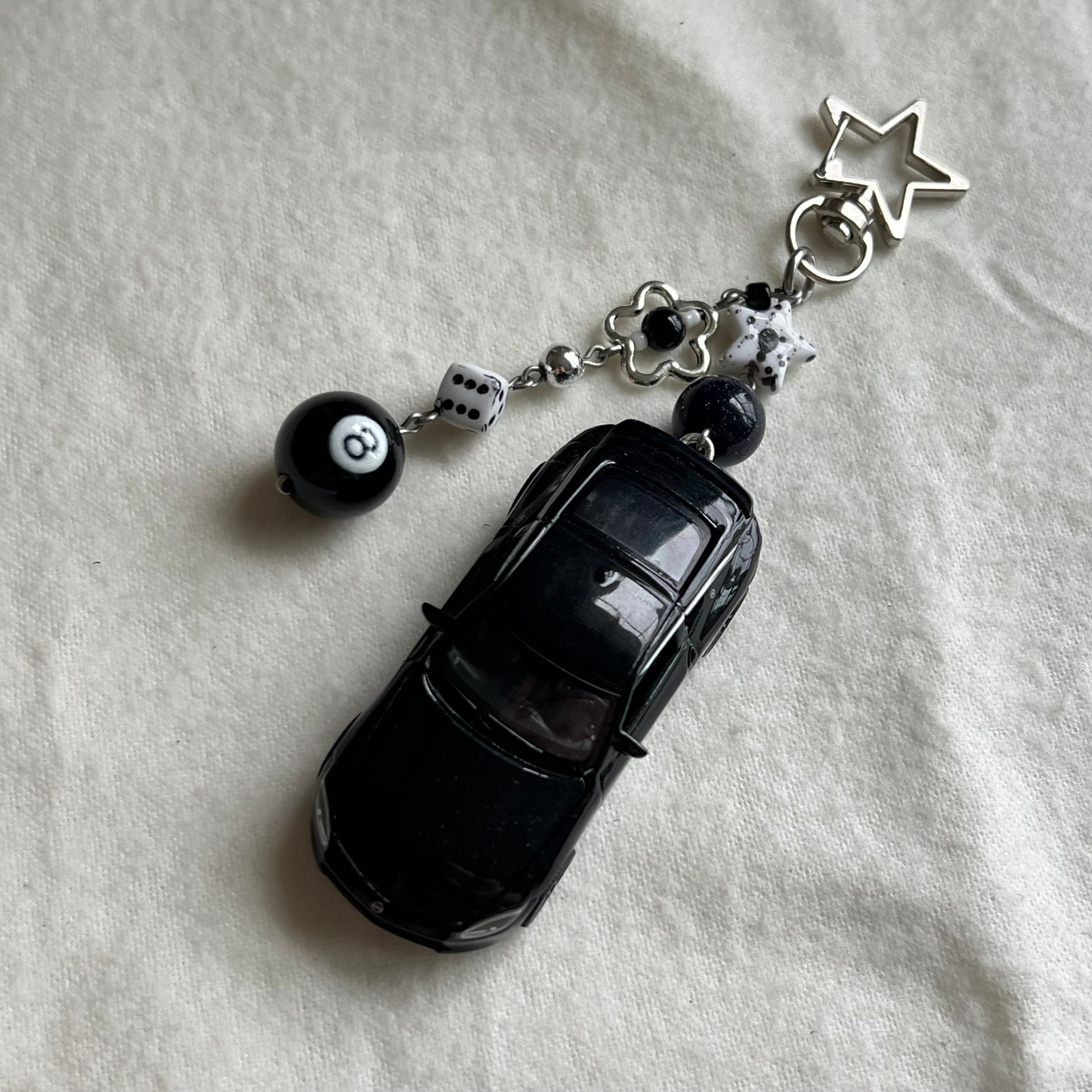 The keychains are made from 3D printed cars, resin cars, diecast cars, beads, stainless steel wire, charms, and clay. Please note that these keychains are made by hand. Because these are made by a human, and not a machine, there may be some small imperfections in the charms, beads, or any other part of the keychain.