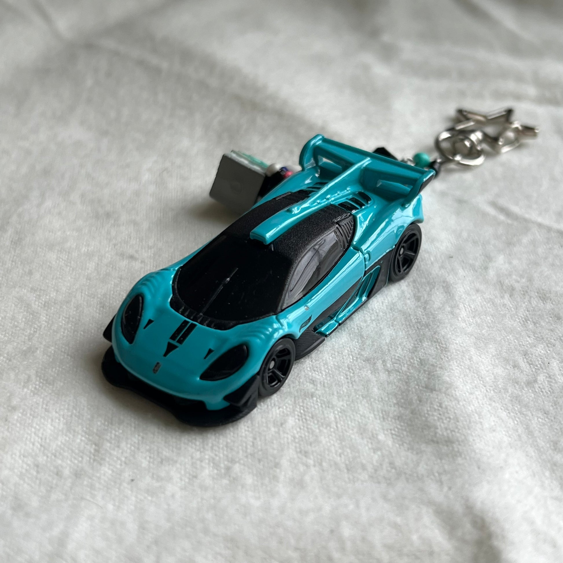 The keychains are made from 3D printed cars, resin cars, diecast cars, beads, stainless steel wire, charms, and clay. Please note that these keychains are made by hand. Because these are made by a human, and not a machine, there may be some small imperfections in the charms, beads, or any other part of the keychain.