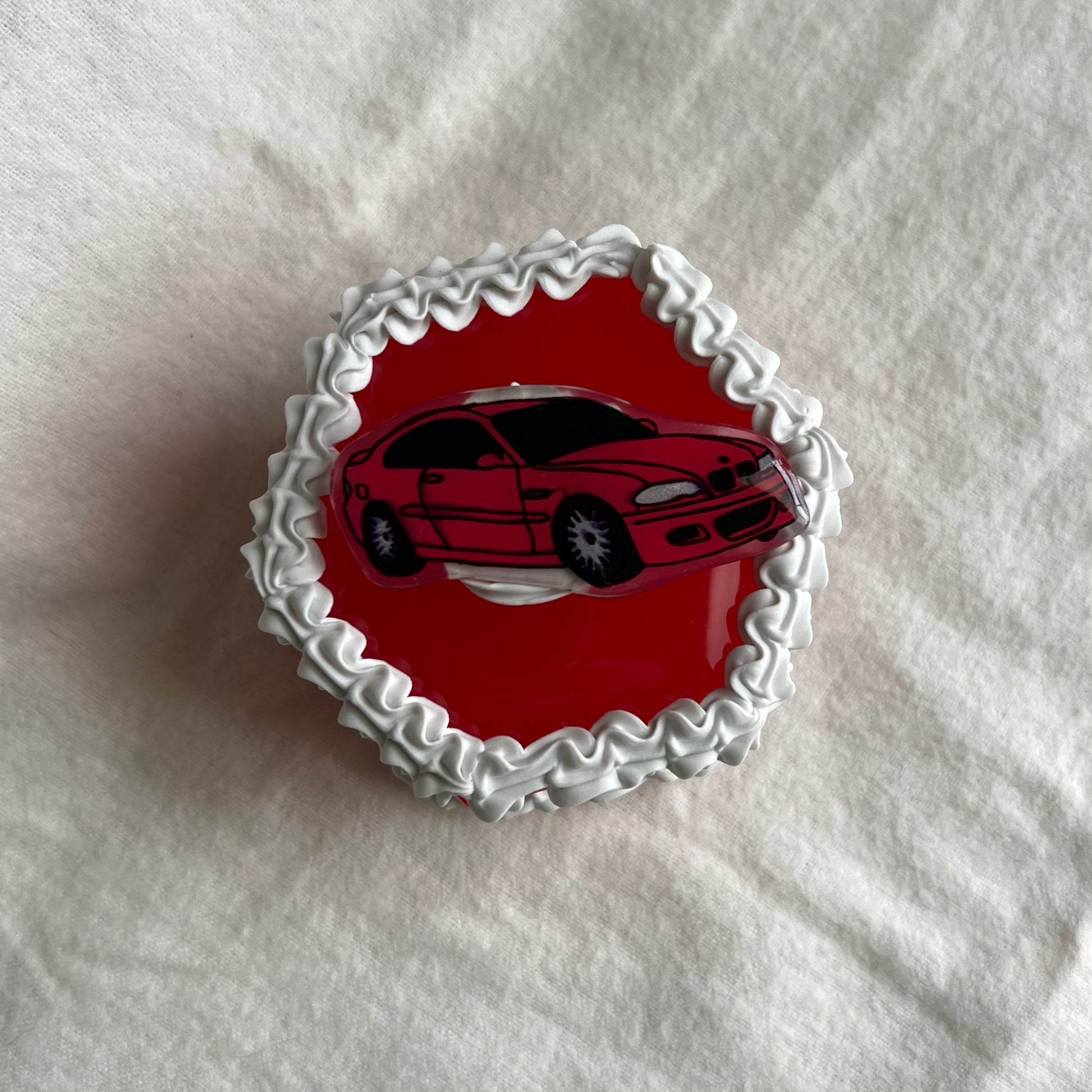 - Hand drawn option: Please include color you want for the cake base, frosting, and the make, model, year, and color of the car you'd like. I can draw any car (as well as most bikes/trucks.) If you are unsure about the vehicle you want, please do not hesitate to email shopcarbonstudios@gmail.com with your inquiry. You may also request additional charms to be added to the frosting.